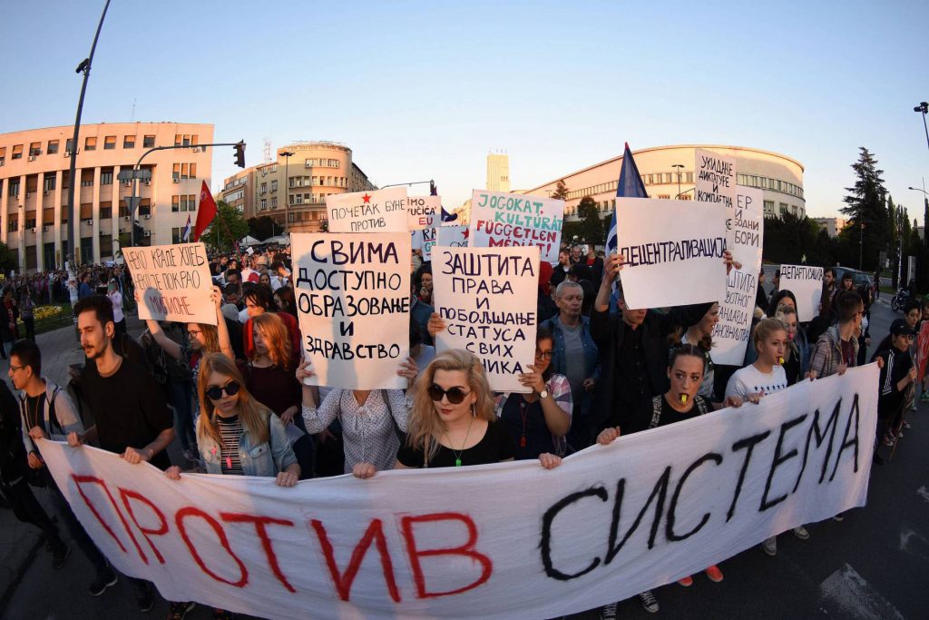 „Volim ljude, ne volim diktatore, gade mi se“, poručio je Kokot i ocenio da vlast u Srbiji smišljeno uništava obrazovanje, jer im ne trebaju obrazovani ljudi koji kritički misle.