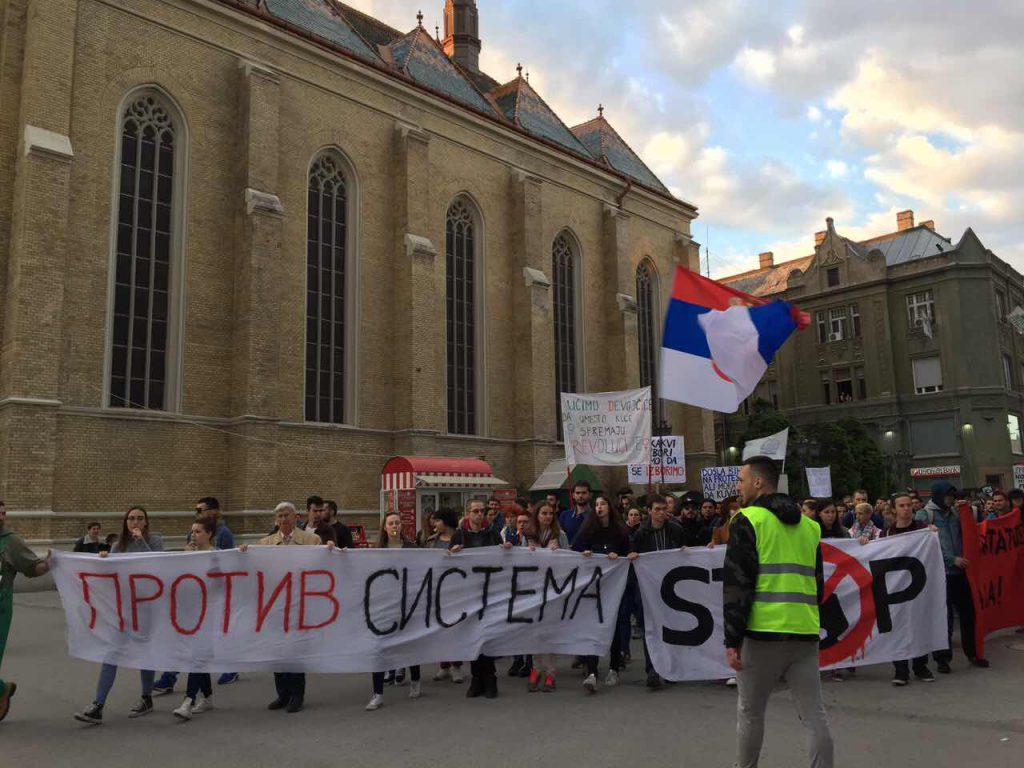 Demonstranti su prošli centralnim gradskim ulicama, a na čelu kolone je predvodio transparent „Protiv sistema“ i „Stop Vučiću“.