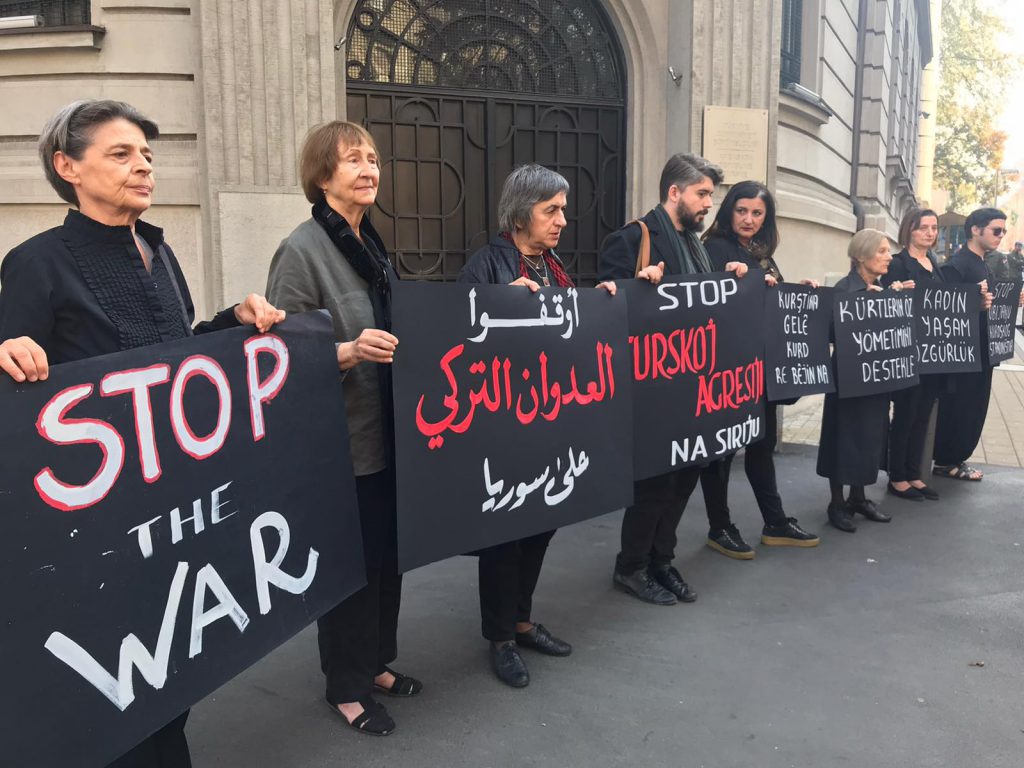 Aktivistkinje i aktivisti nevladine organizacije Žene u crnom protestovali su danas ispred Ambasade Turske u Beogradu pod sloganom „Stop turskoj agresiji na Siriju“. Okupili su se tačno u podne na uglu Krunske i Ulice kneza Miloša, gde se nalazi tursko diplomatsko predstavništvo.