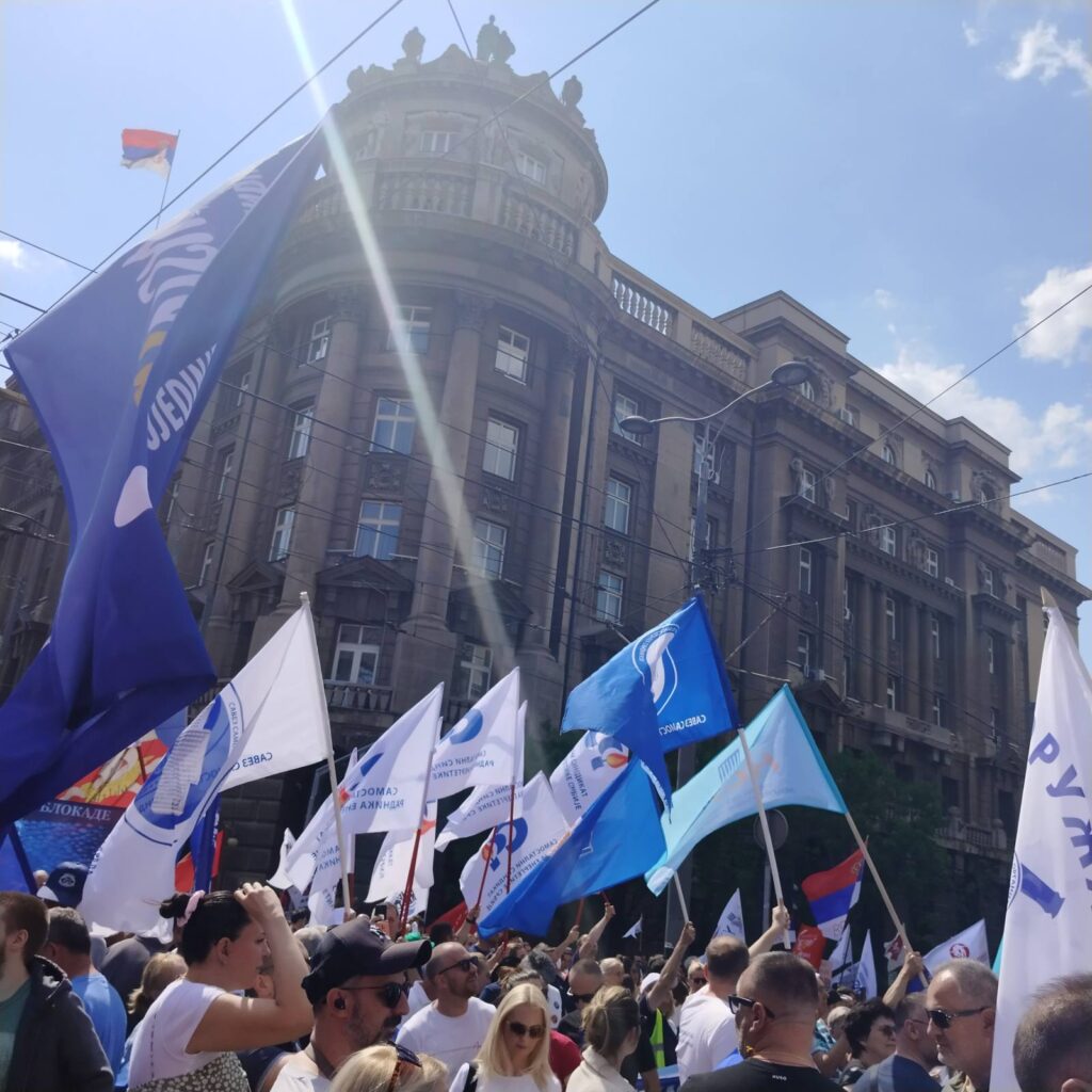 Prvi put u zajedničkoj akciji okupilo se nekoliko nacionalnih sindikata na incijativu studenata u blokadi, koji su u svojim obraćanjima zajedno zatražili da se promene Zakon o radu i Zakon o štrajku.