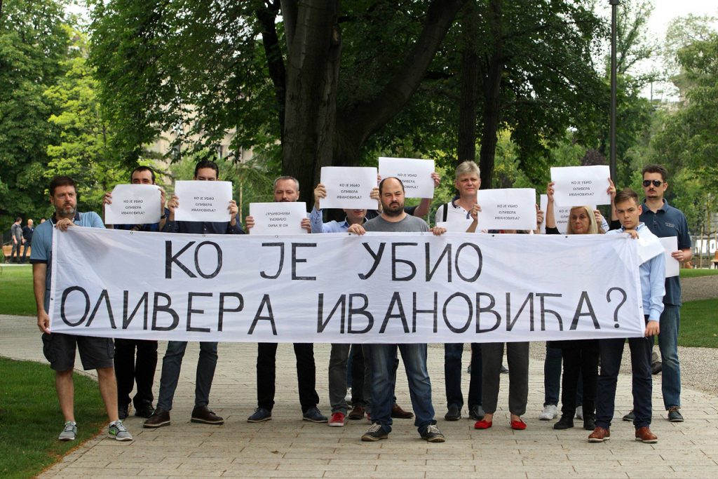 Predstavnici PSG okupljaju se ispred predseništva petkom u 17 časova više od 20 nedelja kako bi javno postavili pitanja predsedniku Srbije. Oni su i večeras kao i prethodnih puta nosili veliki transparent sa pitanjem „Ko je ubio Olivera Ivanovića“.