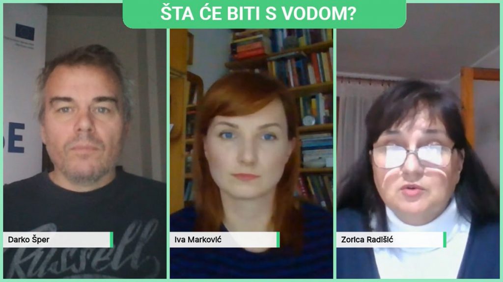Generacije i generacije Zrenjaninaca i okoline nemaju mogućnost da spreče da kroz kožu i kroz razne druge potrebe unose u svoj organizam velike količine štetnih supstanci, rekla je profesorka biologije i građanska aktivistkinja Zorica Radišić u onlajn emisiji Nezavisnog društva novinara Vojvodine “Šta će biti sa vodom?”. Istraživačica političke ekologije, aktivistkinja i konsultantkinja za zaštitu životne sredine Iva Marković rekla je da Srbija gubi jednu trećinu vode u vodosnabdevanju, te da su gubici u mreži daleko iznad svakog evropskog proseka.