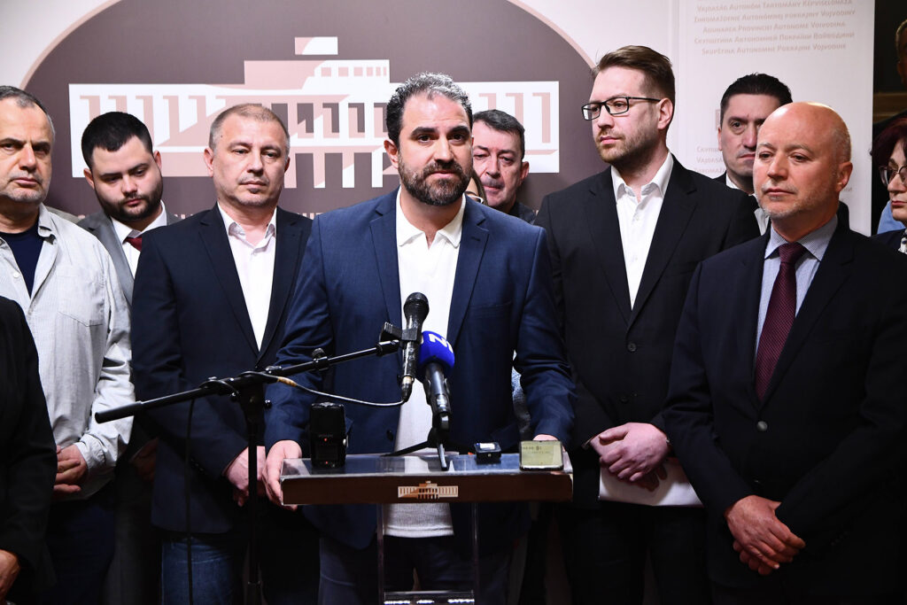 Jovović je došao danas ispred Višeg suda u Novom Sadu kako bi pružio podršku svojim stranačkim kolegama. On se, inače, već više od 90 dana nalazi u kućnom pritvoru.