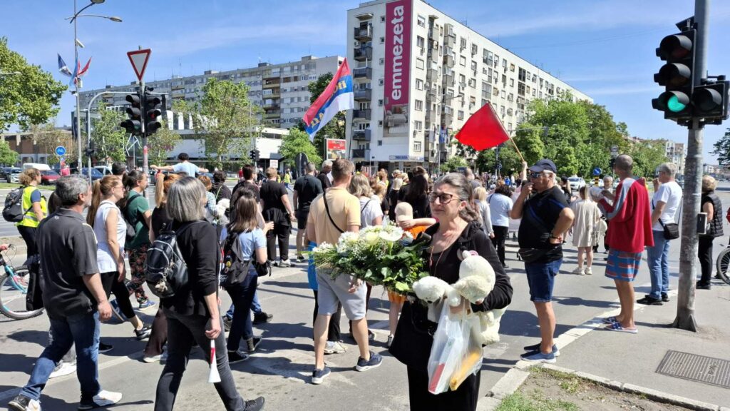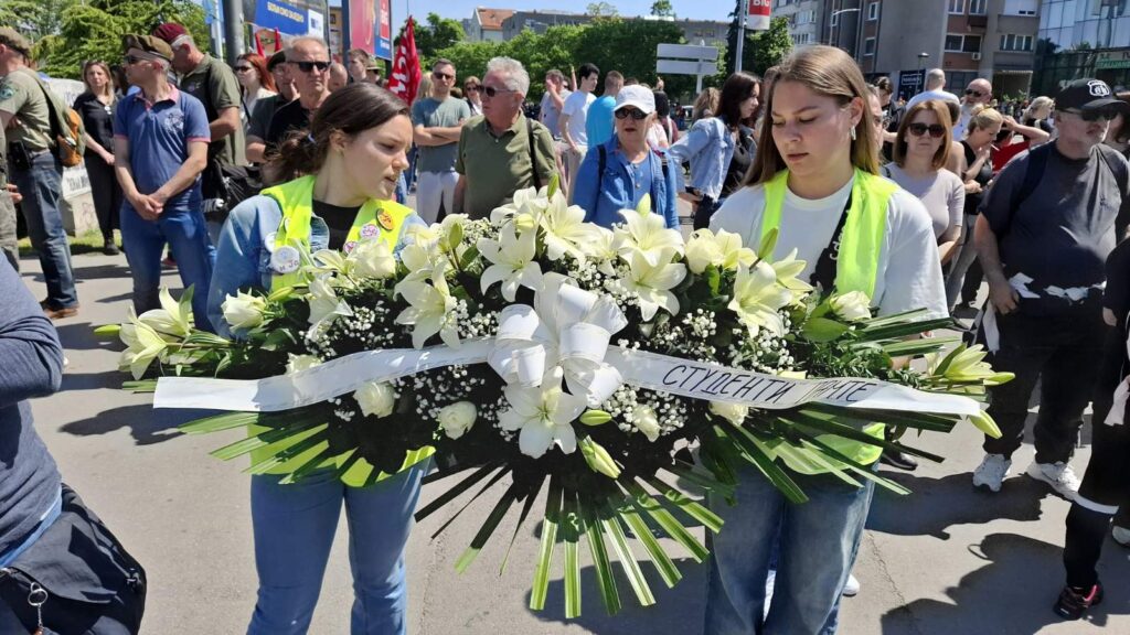 Nakon tišine, studenti, srednjoškolci i građani koji su pešačili od Pomoravlja do Novog Sada, položili su vence i bele ruže na mestu tragedije.