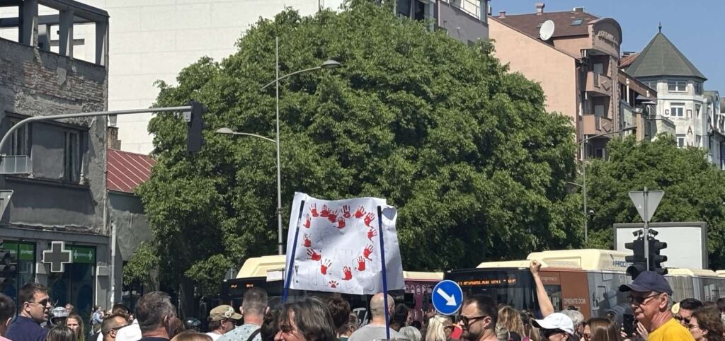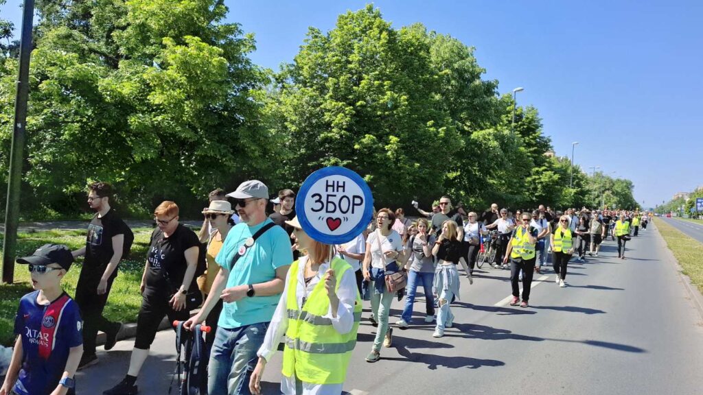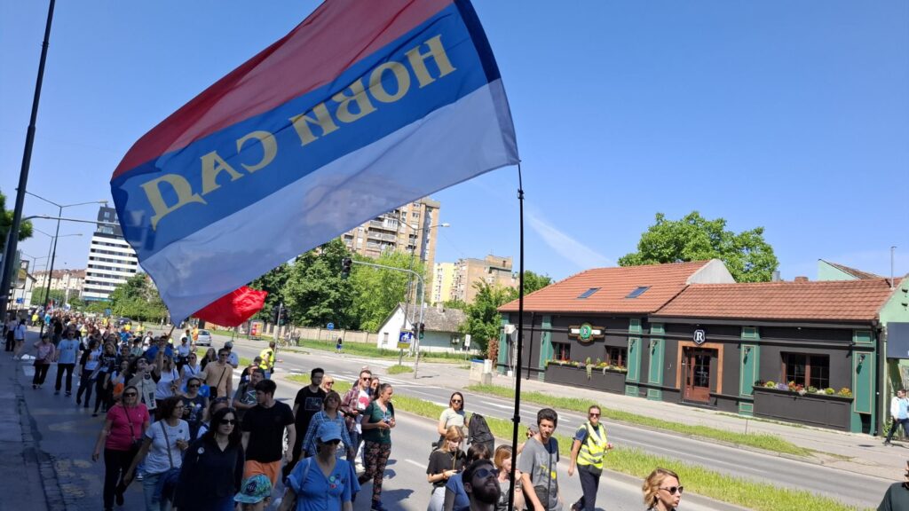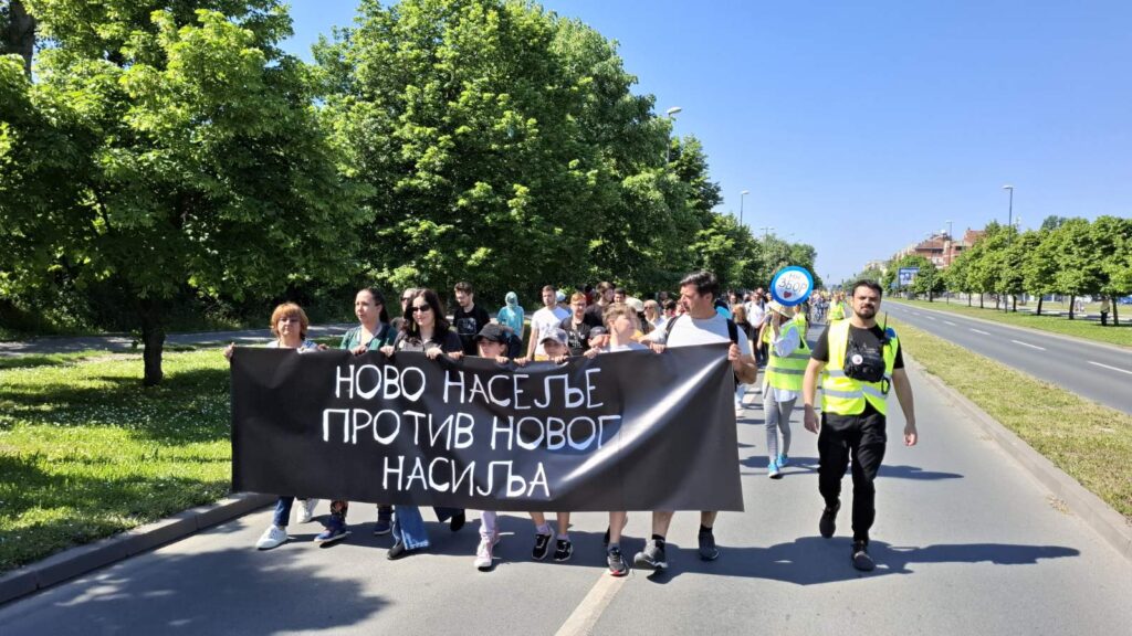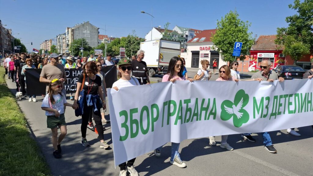 Oni na čelu kolona nose transparente „Futog protiv fušeraja“, „Adice su prozborile“, „Novo naselje protiv novog nasilja“ i jedan najveći – „Zborovi Novi Sad“.