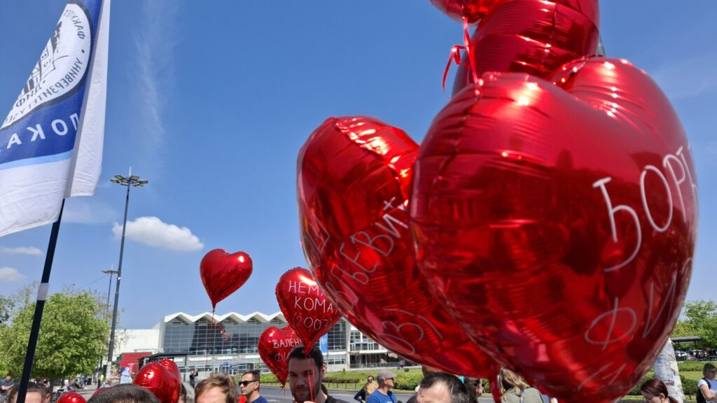 Tokom tišine, na svaki minut, u vazduh je pušteno 16 crvenih balona za 16 stradalih kod Železničke stanice. Na balonima su bila ispisana imena poginulih.