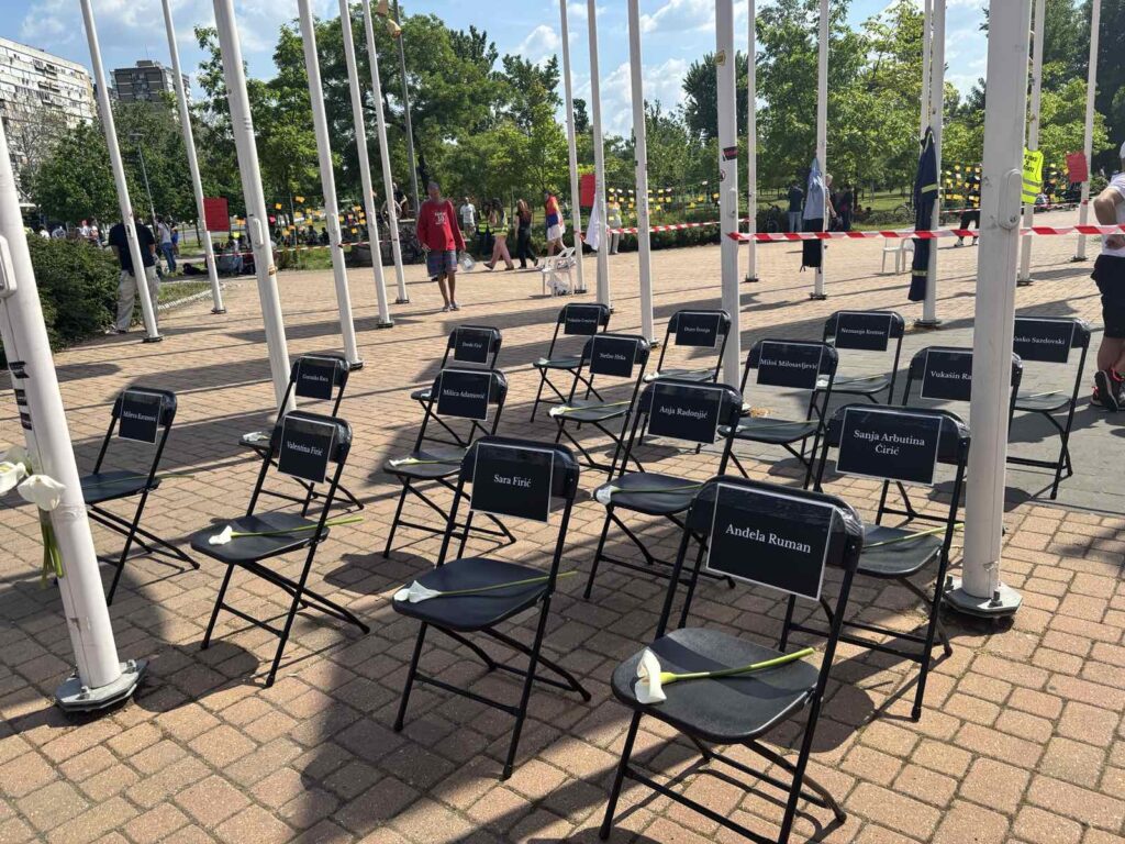 U Limanskom parku, kod jarbola, postavljeno je 16 crnih stolica. Na svakoj od njih bilo je po jedno ime žrtve nadstrešnice i po jedna kala.