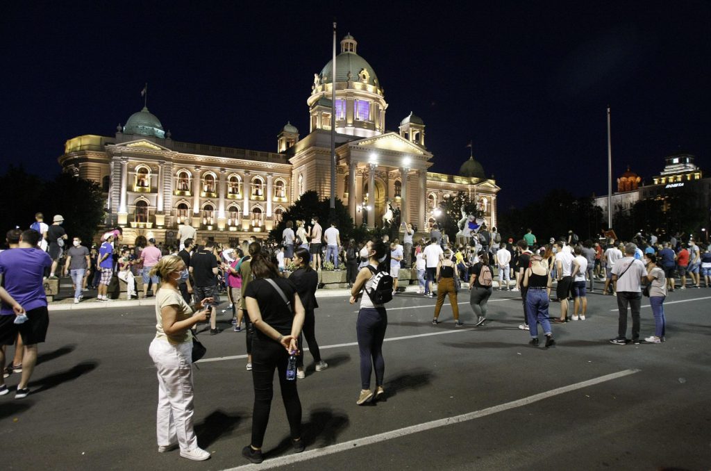 Protest u Beogradu, koji je počeo u utorak zbog najave novih restriktivnih mera u borbi protiv korona virisa, održan je i u nedelju uveče, a skup na platou ispred zgrade parlamenta protekao je bez incidenata i uz učešće znatno manje građana nego prethodnih dana.