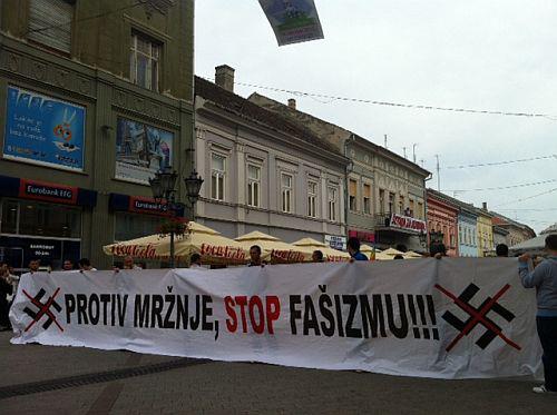 Predsednik Nezavisnog društva novinara Vojvodine Dinko Gruhonjić rekao je da se Srbija danas odriče svoga antifašizma, a time i puta u Evropsku uniju, čiji je osnovni temelj antifašizam.