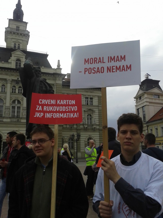 “Nezadovoljstvo radnika stvoreno je nezakonitim otpuštanjem 19 radnika iz JKP Informatika Novi Sad, suprotno Zakonu o radu, Posebnom kolektivnom ugovoru i nemoralnim činom menadžmetna preduzeća, na čijem čelu su predstavnici Treće Srbije, kao koalicioni partner lokalne vlasti”, navodi se u zaključku Sindikata zaposlenih u komunalno-stambenoj delatnosti Novog Sada.