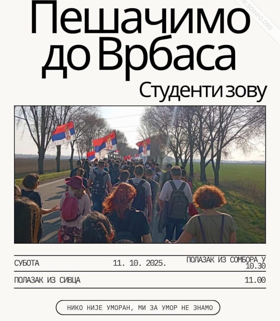 Somborski studenti uputiće se u šetnju od Sivca do Vrbasa u subotu, 11. oktobra.