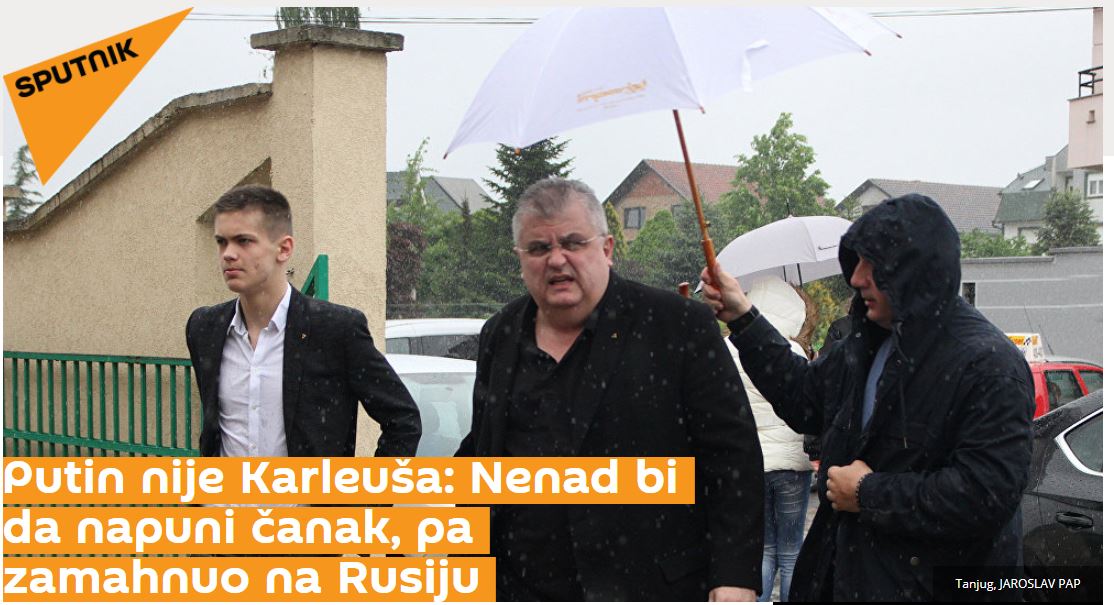 Sputnjik je objavio kolumnu “Putin nije Karleuša: Nenad bi da napuni čanak pa zamahnuo na Rusiju”, autora Nenada Zorića, koja je bila ilustrovana fotografijom na kojoj se, pored Čanka, vidi i njegov 19-godišnji sin Milan.