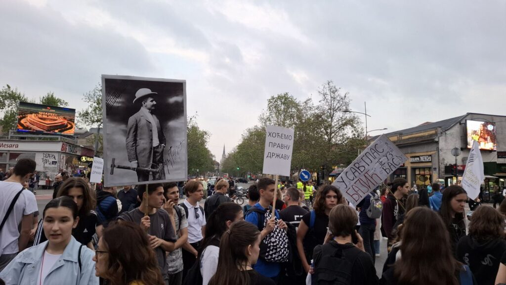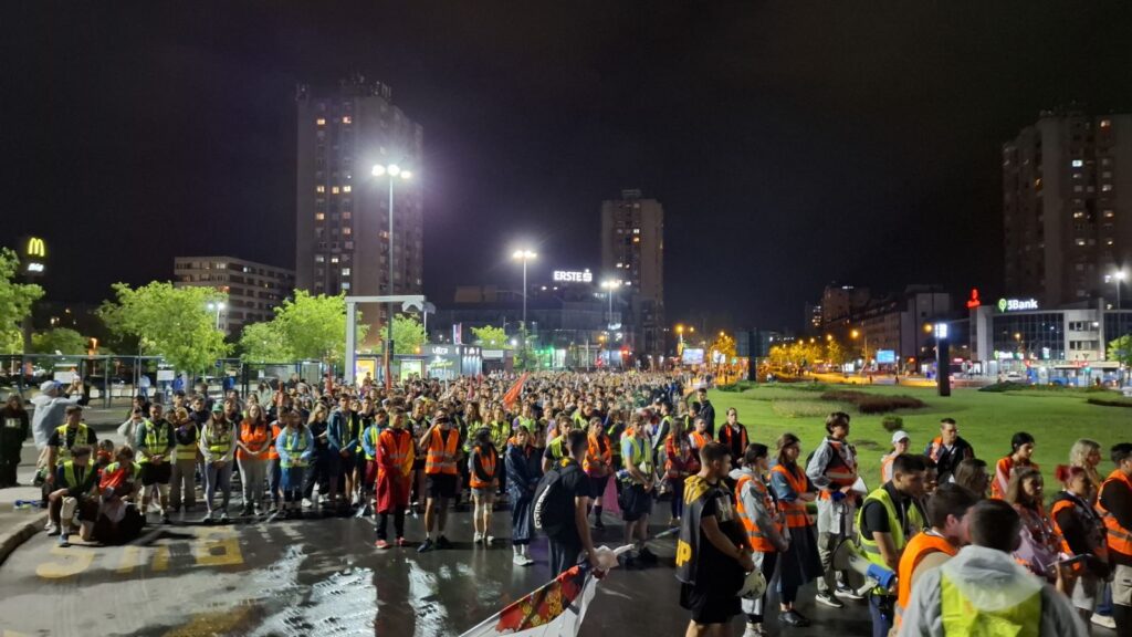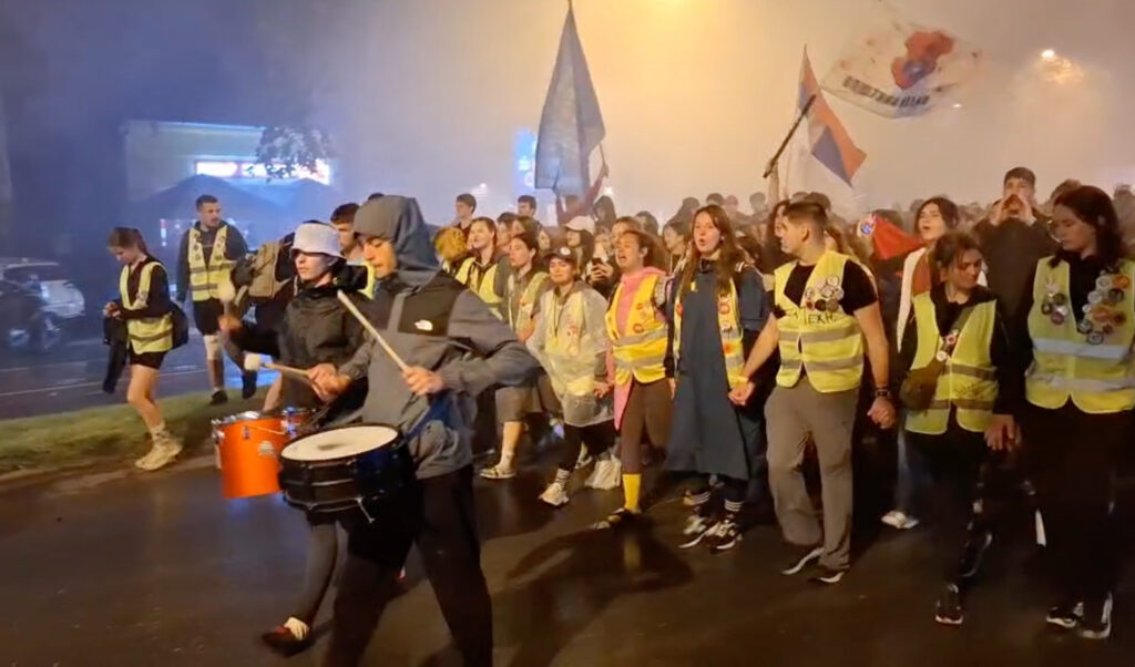 Učenici srednjih škola, koji su došli peške i biciklima iz više gradova na subotnji protest zbog uvođenja onlajn nastave, uputili su se nakon odavanja pošte ka Tehničkoj školi „Mileva Marić Ajnštajn“ gde je planirano da deo njih prespava.