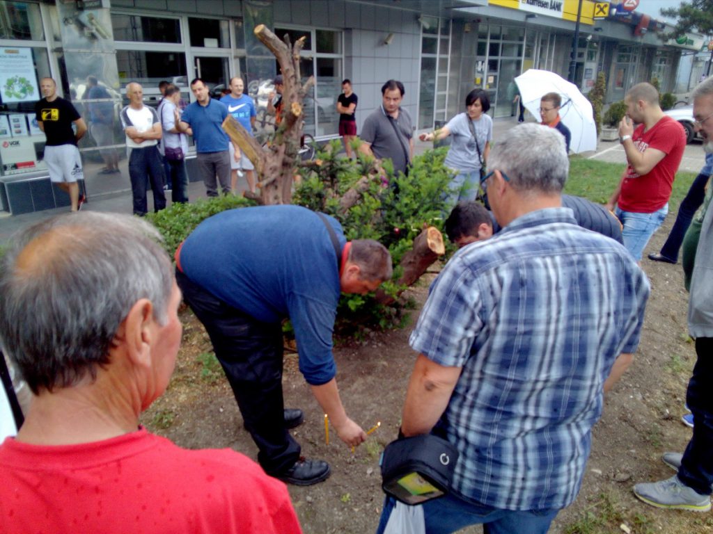U neposrednoj blizini, nalazi se i veliki bilbord kao i prodavnica “Gigatron” te su Staropazovčani posumnjali da je pomenuta firma odgovorna za seču. Građani Stare Pazove su putem društvenih mreža uglavnom optuživali “Gigatron” za seču drveta, jer je nekoliko dana posle seče otvorena nova prodavnica pomenute kompanije u lokalu ispred koga se drvo nalazi.