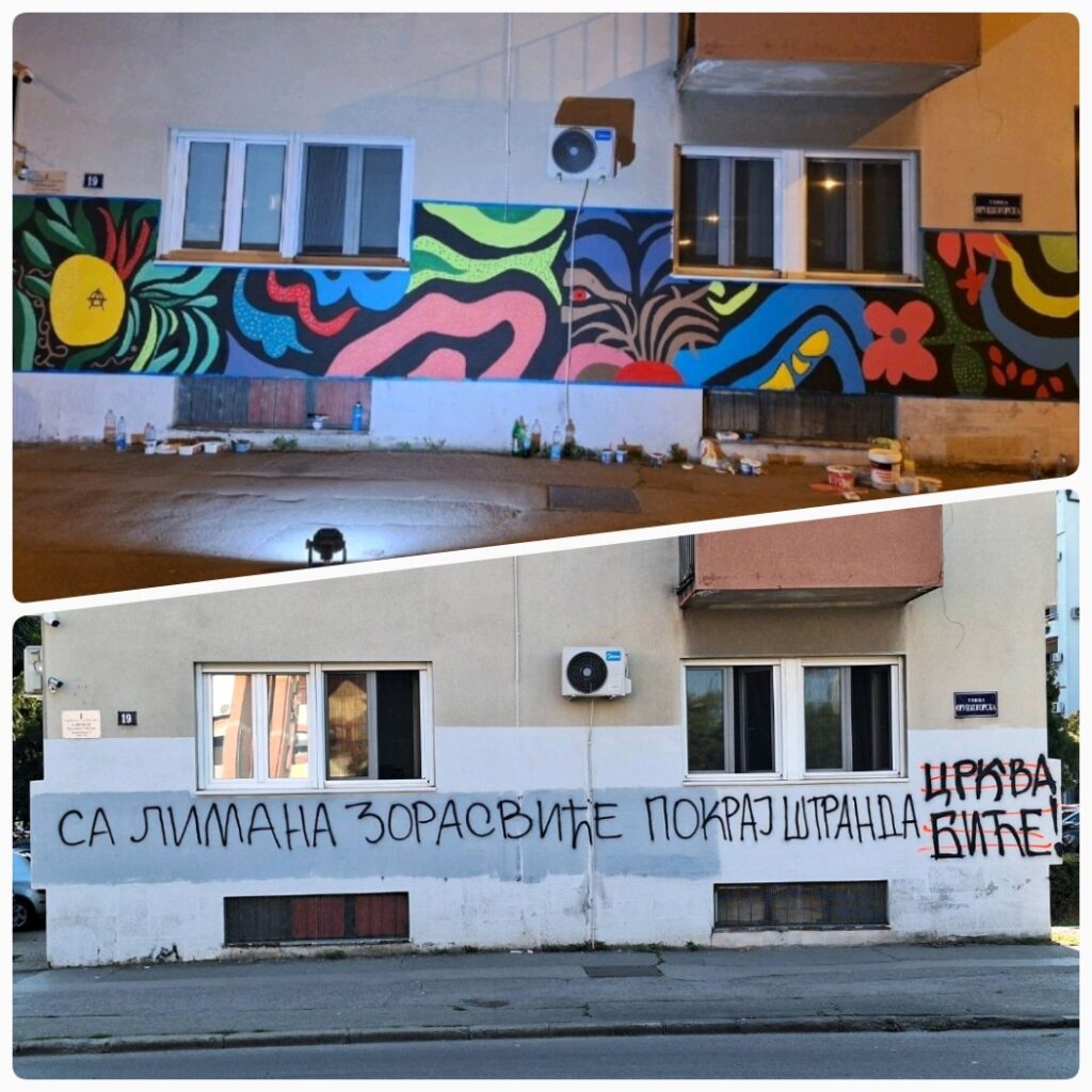 Pre i posle: Grafit i poruka stanovnika Limana prelepljena preko grafita, foto: Nataša Matijević