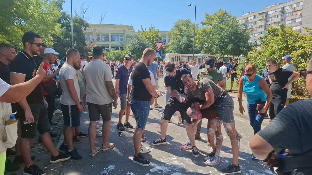 U jednom momentu je došlo do incidenta kada su dva muškarca prišla naprednjacima, oborila kante sa farbom i njome polila nekoliko naprednjačkih „molera“. Došlo je i do guranja i manje tuče.