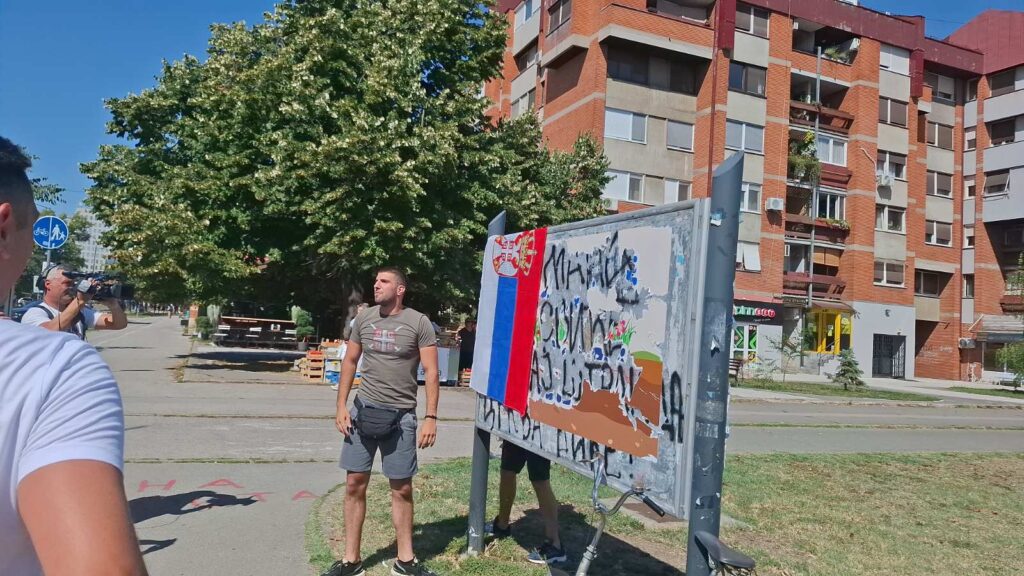 Bilbord koji su građani juče zalepili je pocepan i preko njega su postavili zastavu Srbije.