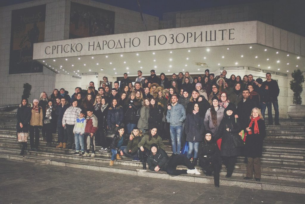 Stotinu mladih iz Srbije, Hrvatske i Bosne i Hercegovine, učesnika projekta “YU Peace – Mladi ujedinjeni u miru” okupilo se sinoć u Novom Sadu, gde su gledali predstavu “Na Drini ćuprija” u Srpskom narodnom pozorištu