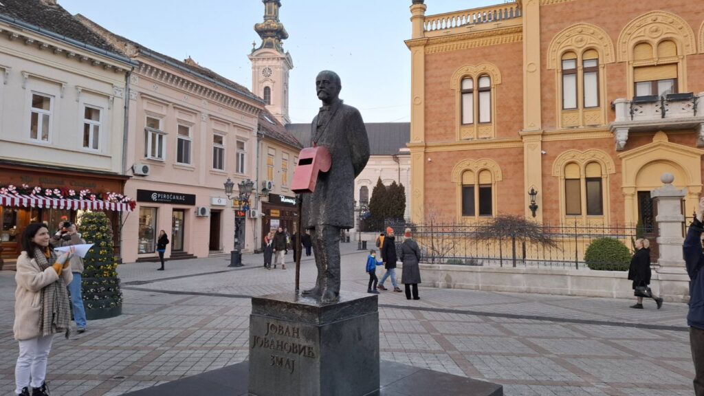 Studenti Akademije umetnosti u Novom Sadu i učenici Jovine gimnazije okačili su danas pištaljku velikih dimenzija na spomenik književniku Jovanu Jovanoviću Zmaju.