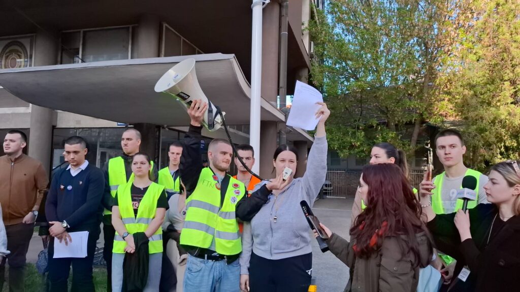Više stotina studenata prošetalo je od kampusa UNS do policijske stanice Bulevarom cara Lazara, a zatim Bulevarom oslobođenja.