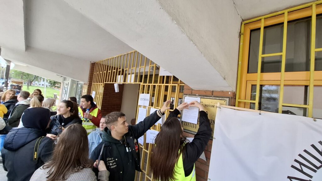 Zaposleni su nakon izlaska istakli transparent „Za studente, uz studente“.
