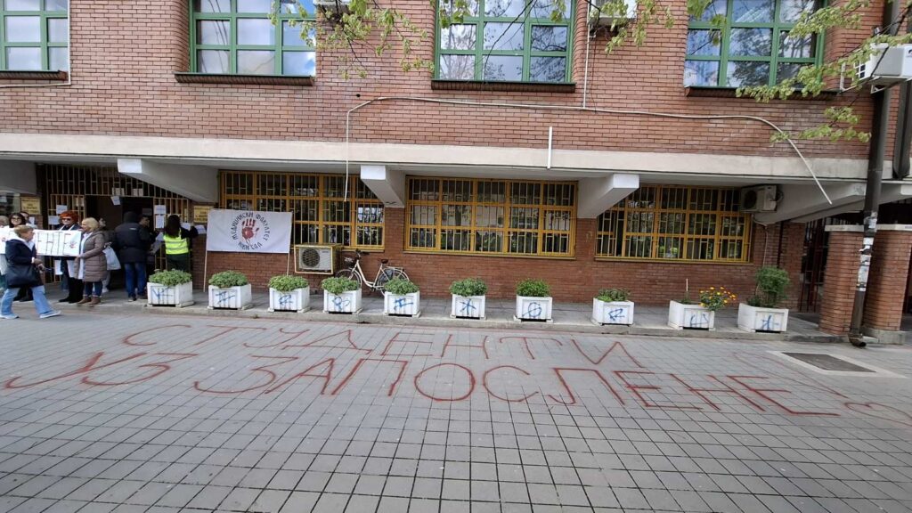 Ispred zgrade su napisali grafite „Studenti uz zaposlene“ i „Nema straha“.