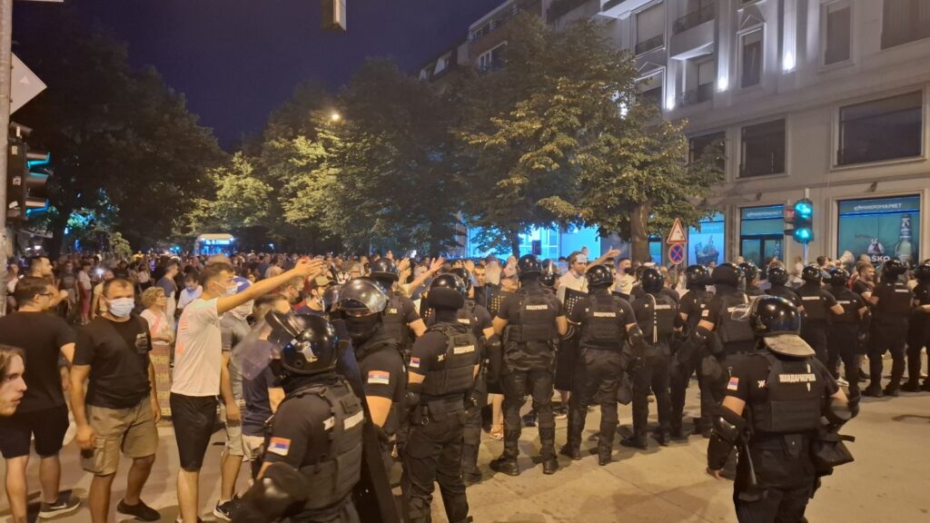 "Pristalice SNS su koordinisano i koherentno krenule s korišćenjem pirotethničkih sredstava koja su usmerili prema mirno okupljenim građanima, ne samo na jednoj lokaciji, već u više gradova, dok predsednik, perfidno, to pripisuje građanima"