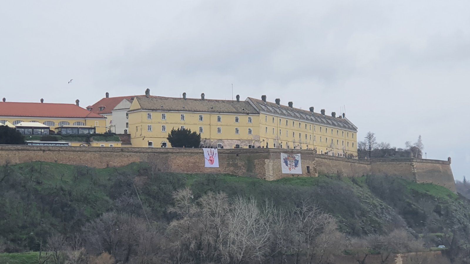(FOTO, VIDEO) Okačen pa skinut transparent „Free students! Free elections! Now!“ na Petrovaradinskoj tvrđavi