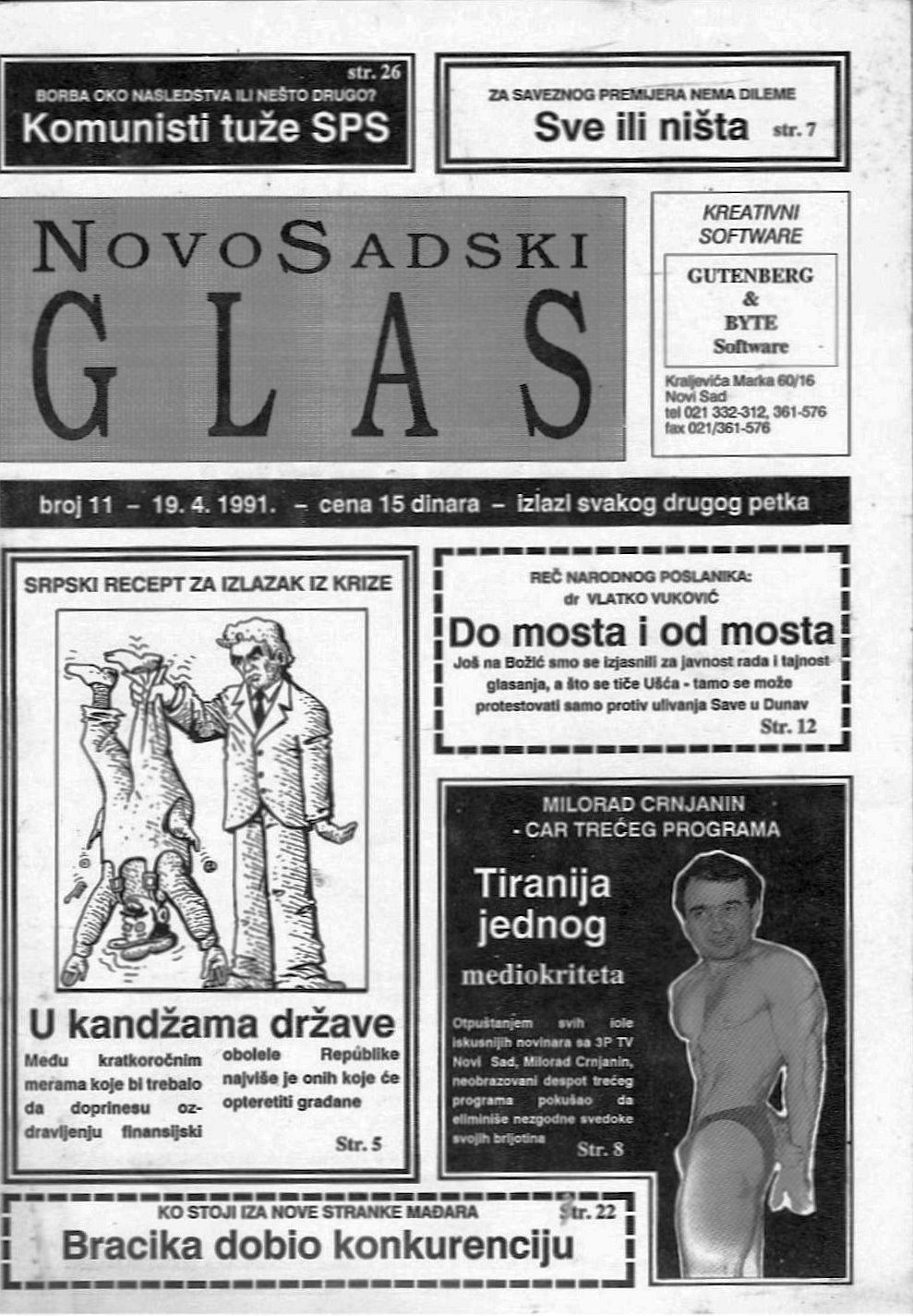 (Vladimir Pavlov, Novosadski glas, broj 11, 19. april 1991.)