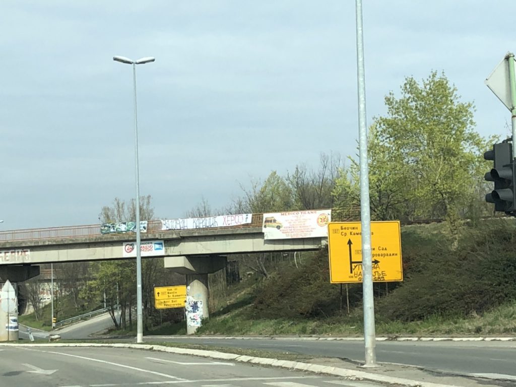 Transparent sa parolom „Radovan Karadžić heroj“ osvanuo je jutros na jednom nadvožnjaku u Novom Sadu.