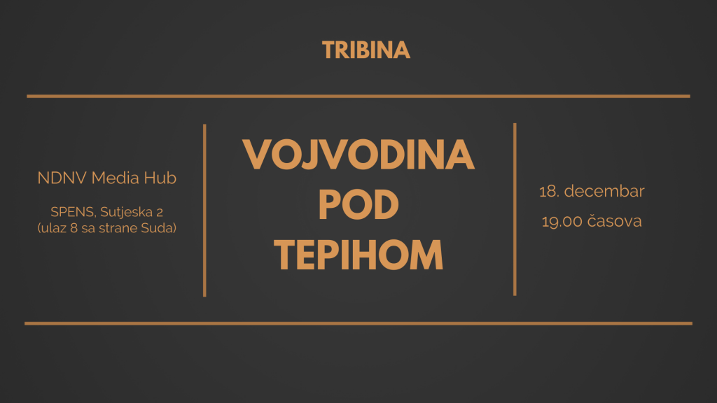 Nezavisno društvo novinara Vojvodine (NDNV) u sredu, 18. decembra, organizuje tribinu “Vojvodina pod tepihom“, posvećenu pitanju vojvođanske autonomije i decentralizacije vlasti, koje već godinama nije tema na javnoj sceni Srbije, iako, kako se navodi, centralističko upravljanje unazađuje društvo u svim segmentima.
