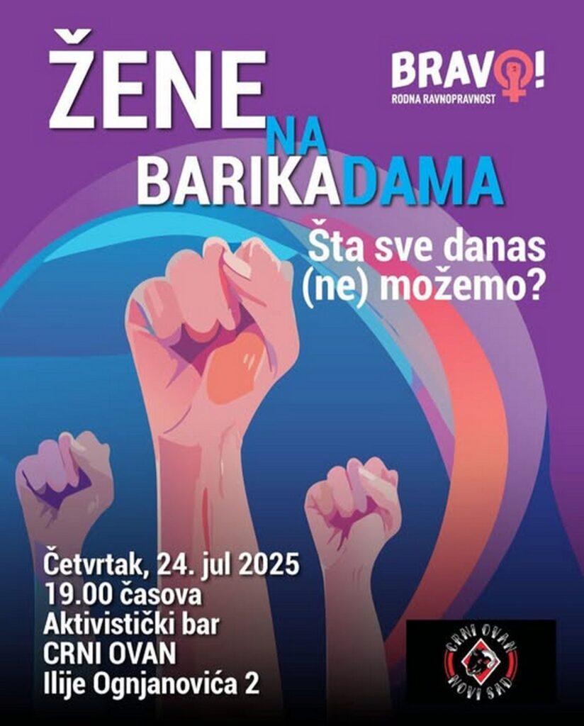 Grupa za rodnu ravnopravnost Građanskog pokreta Bravo i aktivistički bar Crni ovan organizuju sutra, 24. jula 2025. program “Žene na barikadama – Šta sve danas (ne) možemo?”.