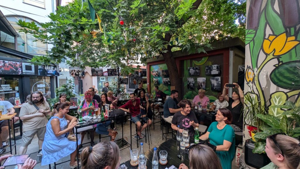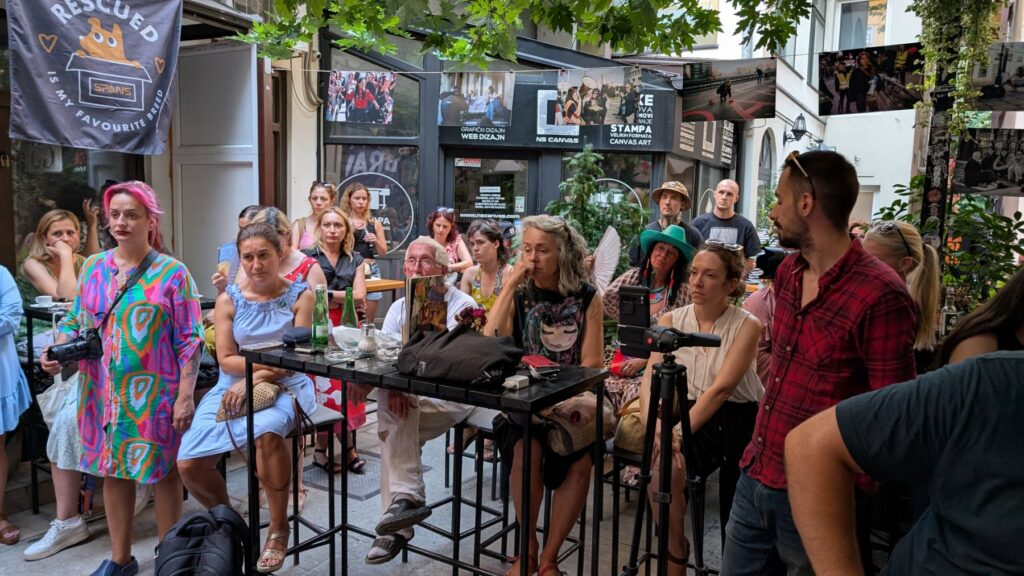 Razgovor, koji je upriličila Grupa za rodnu ravnopravnost Građanskog pokreta BRAVO, pred prepunim dvorištem ljudi u kafeu u centru grada, moderirala je filozofkinja dr Tanja Todorović (Filozofski fakultet UNS).