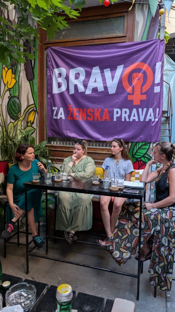 U razgovoru o motivima i doprinosu žena u ovovremenoj borbi koja, nakon pada nadstrešnice na novosadskoj Železničkoj stanici ispod koje je ostalo smrskano 16 ljudi, traje već osam meseci, učestvovale su i: kopredsednica grupe za rodnu ravnopravnost ovog pokreta Aleksandra Mirimanov i studentkinja Akademije umetnosti u Novom Sadu Jelena Stanković.