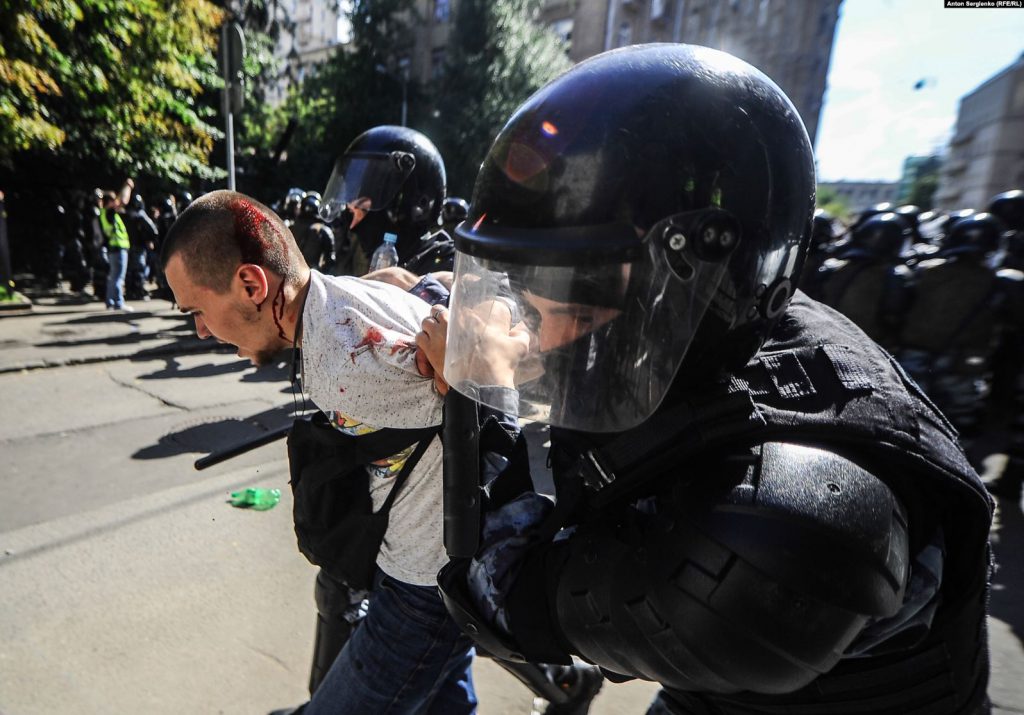 Reporteri RSE prenose da su se, po početku policijske akcije, mogli čuti neki od demonstranata koji su pevali rusku himnu dok su drugi skandrali “Nenaoružani smo”, “Pošteni izbori”, “Rusija će biti slobodna”.