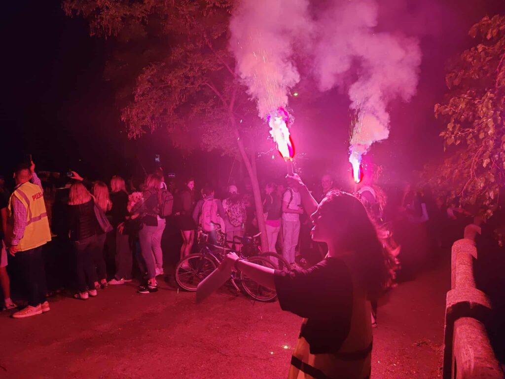 Pešaci su dočekani vatrometom i bakljama, a dok su prelazili Varadinski most skandirali su “Ispunite zahteve”.