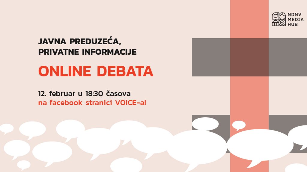 Nezavisno društvo novinara Vojvodine organizuje novu onlajn debatu na temu „Javna preduzeća, privatne informacije“ U sredu, 12. februara, u 18.30 sati.