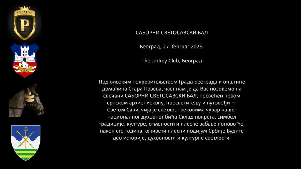 Informacija koju smo dobili od nekolicine privrednika sa teritorije Opštine Stara Pazova da će se 27. februara 2026. godine na imanju The Jockey Club u Surčinu održati Saborni svetosavski bal, izazvala je značajan stepen opreza među potencijalnim učesnicima i sponzorima koji su nam se obratili da bi saznali nešto više. Ideja koju organizator navodi o oživljavanju svetosavske tradicije naišla je na pitanja o transparentnosti, finansijskoj pouzdanosti i ulozi lokalnih vlasti. Kao visoki pokrovitelji ovog događaja navode se Grad Beograd i Opština Stara Pazova.