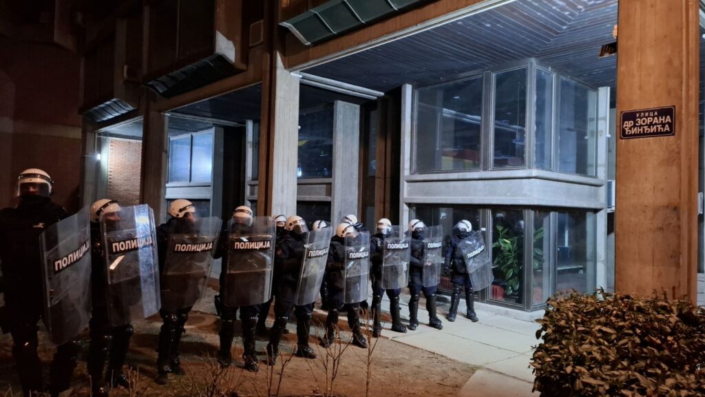 Jake policijske snage ušle su u Filozofski fakultet u Novom Sadu i uz upotrebu sile izbacile demonstrante koji su blokirali zgradu od podneva.