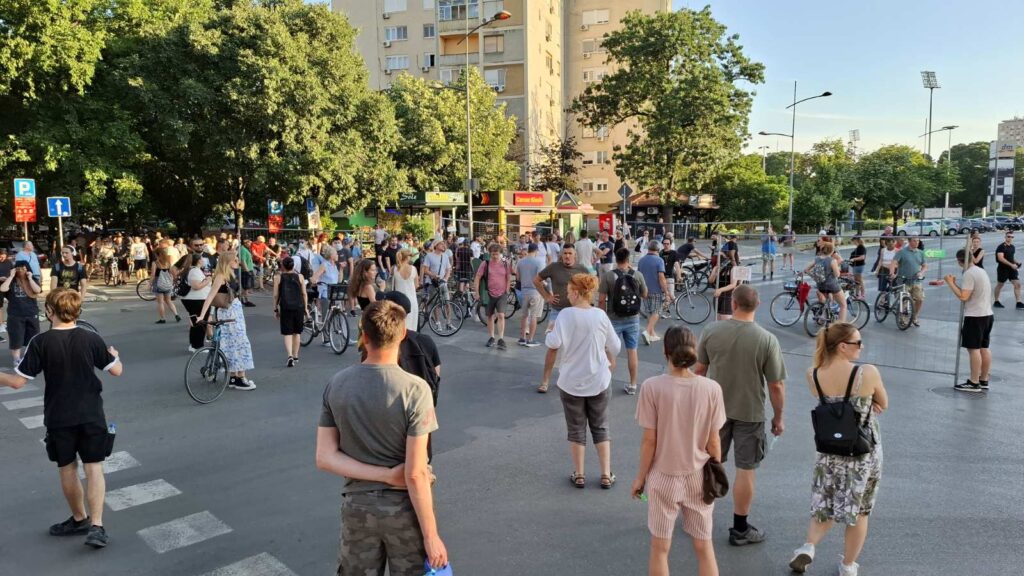 Građani koji su se na poziv Zborova Novog Sada okupili u kampusu Univerziteta u Novom Sadu, krenuli su ka centru i blokirali raskrsnicu Stražilovske i Maksima Gorkog, nadomak prostorija Srpske napredne stranke.