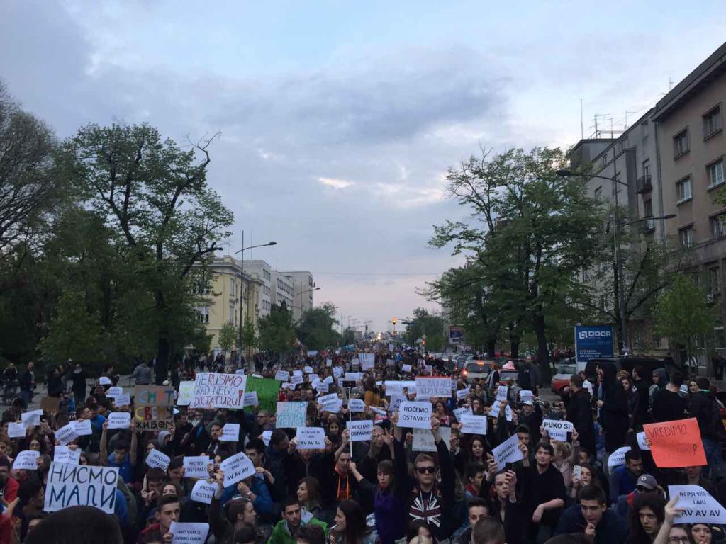 Na jednom od snimaka vidi se nekoliko momaka koji su stali na stepenice kod ulaznih vrata u zgradu i okrenuti leđima zgradi uzvikuju: „Hoćemo uživo, hoćemo uživo“. Na snimku se jasno vidi i da nekoliko momaka iz mase prilazi do njih i traži da se pomere sa ulaza. Nikakav incident se ne vidi, dok snimatelj RTV-a bez problema snima tok protesta. Na drugom snimku vidi se momak koji takođe dolazi do stepeništa i glasno počinje da viče „AV, AV, AV“, dok se iz mase čuju pogrdni povici.