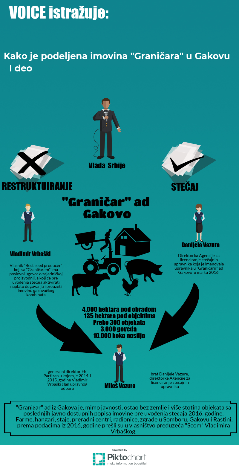 Da je gakovačko preduzeće zapravo “bezemljaš” čiju su imovinu pre uvođenja stečaja preuzela preduzeća Vladimira Vrbaškog – otkrio je VOICE 2016. godine poređenjem imovinske karte preduzeća iz 2011. godine, kada je po odluci Vlade pokrenuto restrukturiranje, i aktuelnog stanja u evidenciji katastra.