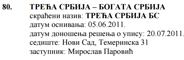 Izvod iz registra: Treća Srbija – Bogata Srbija