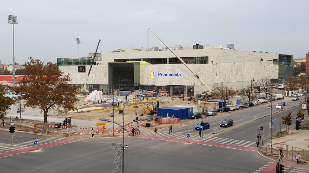 Detalji prostornog uređenja Promenade bili su propisani urbanističkim projektom, donetim u januaru prošle godine, a kojim je planirano da se na najvećem krovu tržnog centra podigne poluintenzivno zelenilo, sa mnoštvom sportsko-rekreativnih sadržaja. Već u septembru dokument je prerađen, u skladu sa izmenama koje je investitor zamislio.
