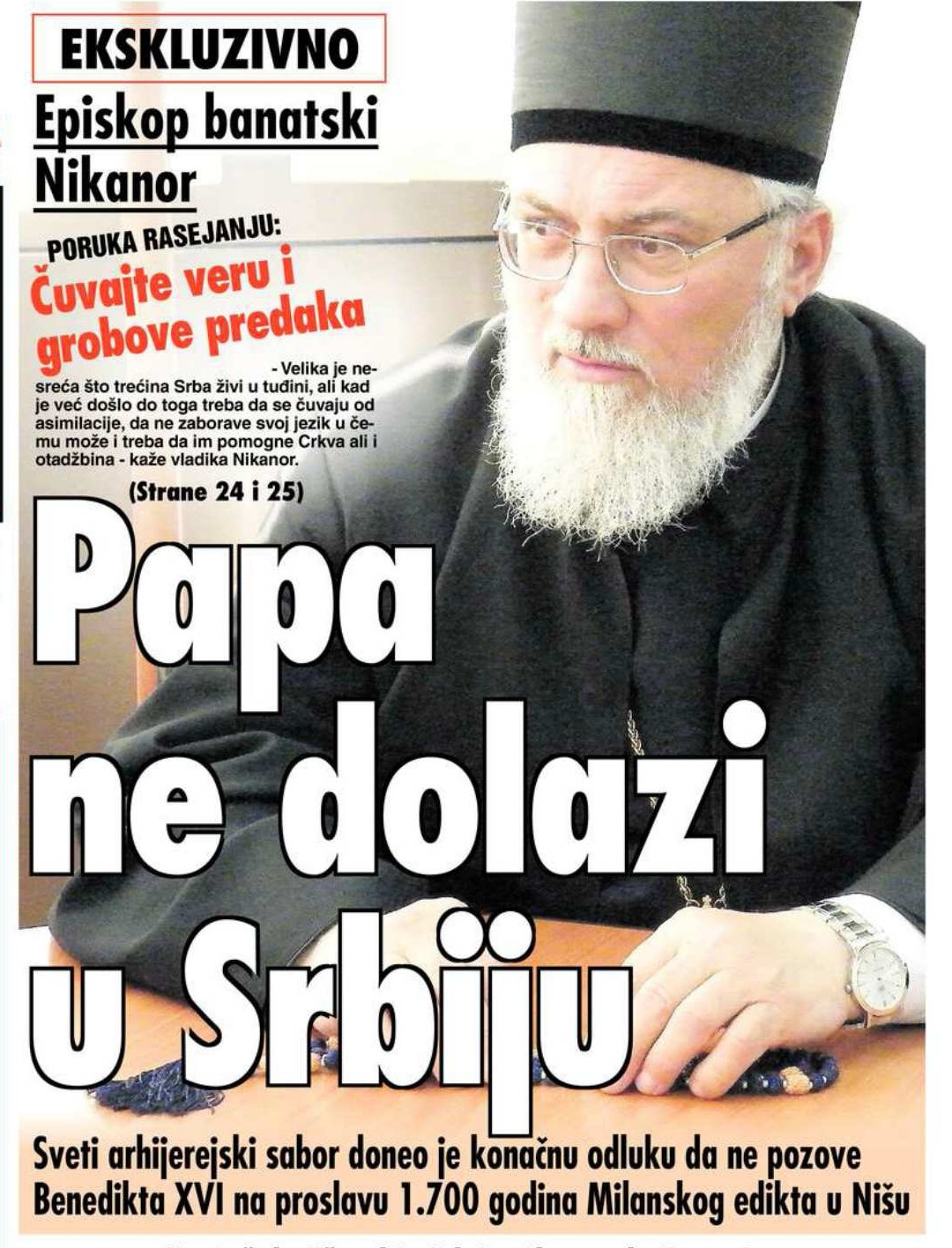 U pokušaju da čujemo razloge zbog kojih crkva odbija saradnju sa zvaničnim, državnim institucijama, otišli smo na zakazan sastanak sa vladikom, ali smo, umesto konstruktivnog razgovora, doživeli niz uvreda i na kraju smo i izbačeni iz kancelarije.