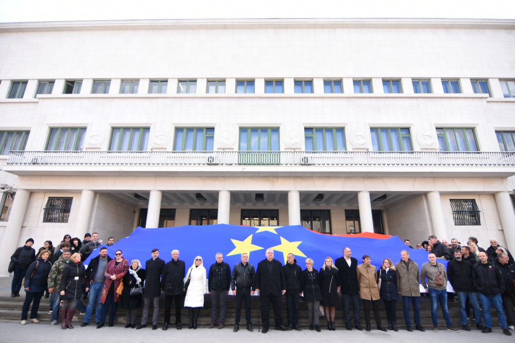 Oni su razvili vojvođansku zastavu široku 15 metara i pozvali građane Vojvodine da “visoko podignu” zastavu Vojvodine.