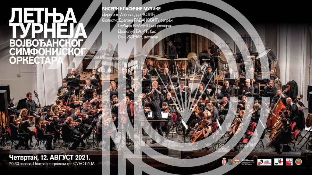 Vojvođanski simfonijski orkestar će od 12. do 21. avgusta biti na svojoj letnjoj turneji po Vojvodini, kada će održati koncerte na trgovima u Subotici (12. avgust), Zrenjaninu (15. avgust), Sremskoj Mitrovici (17. avgust), Somboru (19. avgust) i Vršcu (21. avgust).