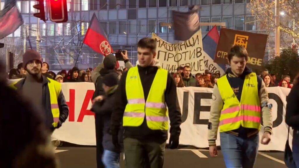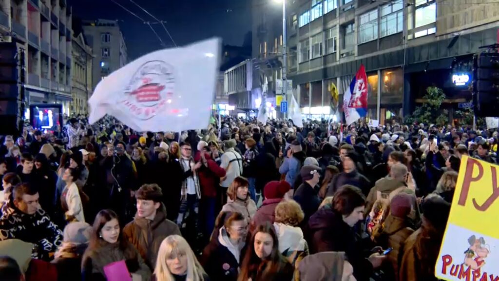 Okupljeni su nosili i više zastava fakulteta sa kojih dolaze, kao i pojedinih beogradskih opština, a usput su uzvikivali „Pumpaj“, „Svi na ulice“ i pravili buku duvanjem u pištaljke.
