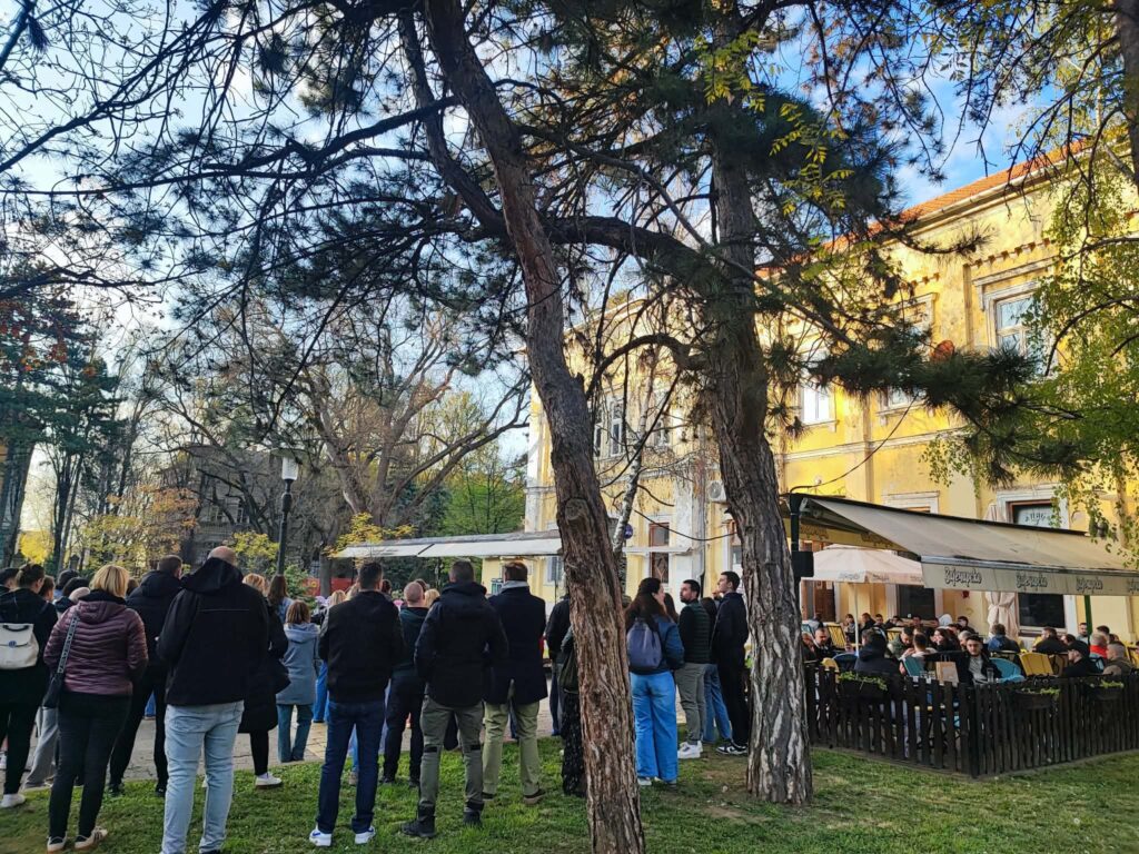 Par stotina ljudi stajalo je strpljivo ispred lokala jer slobodnih stolica nije bilo ni u zatvorenom prostoru, ni u bašti. Mirno su čekali da budu usluženi.