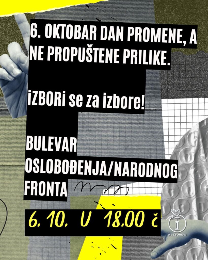 “Povedi prijatelje, porodicu, komšije! Ne posmatraj — učestvuj! Jer promena počinje na ulici. Jer je ovaj 6. oktobar je dan kada ustajemo, ne onaj koji opet propuštamo”, poručuju Zborovi.